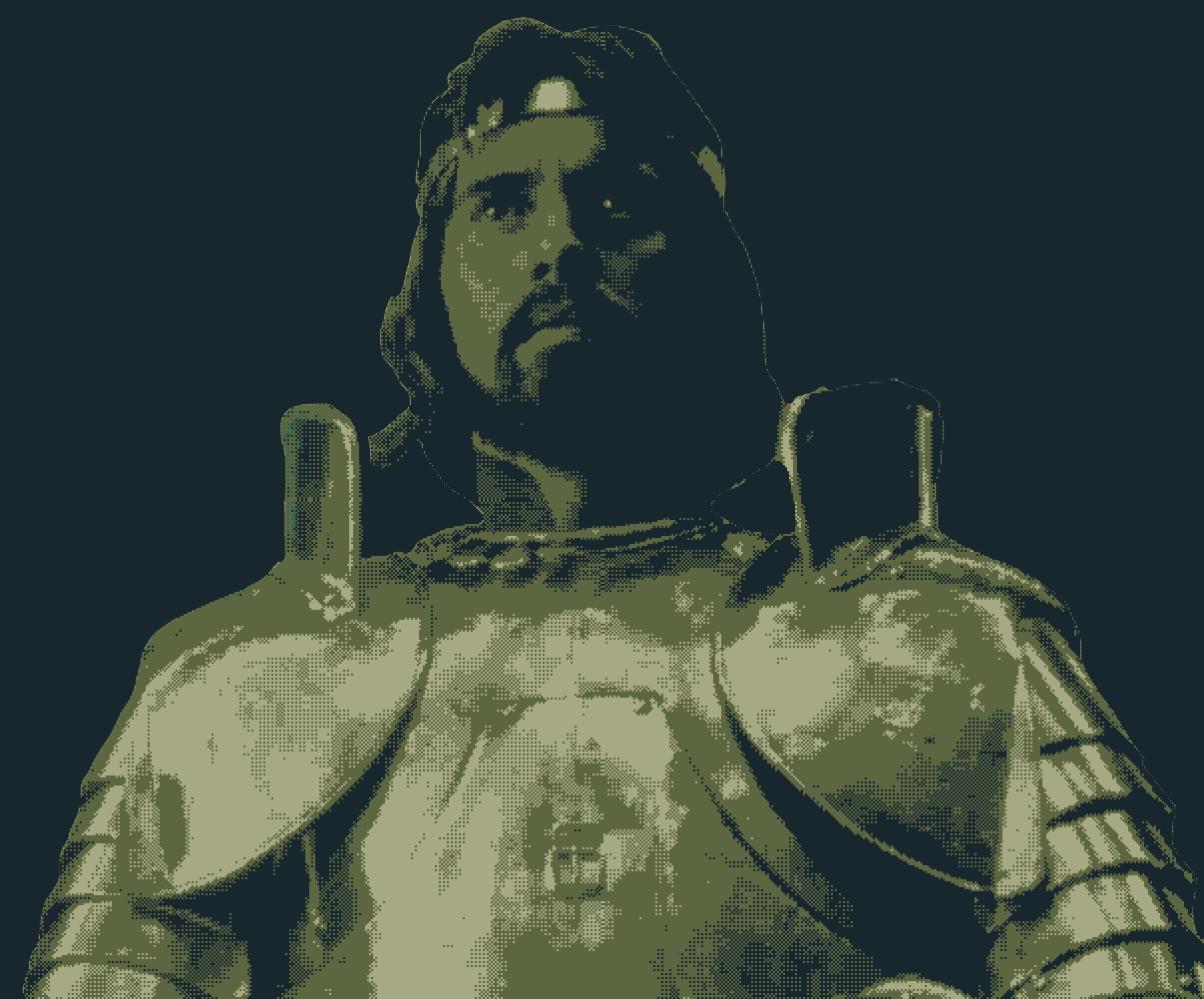 At court she wears her jade gambeson dress showing her flowing silver hair. However, her helm with her long mail hood is never far. She speaks with a flat voice to disguise her emotions. She deeply cares for the people of the realm and doesn’t agree with The Ghoul Knight.